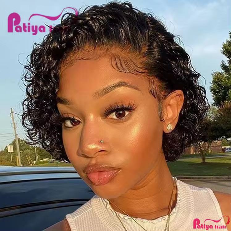 Perruque Pixie Lace Wig avec Baby Hair, 13x1, perruques Lace Frontal courtes et bouclées, perruques Bob Style Perruque Pixie Cut, perruques de cheveux humains