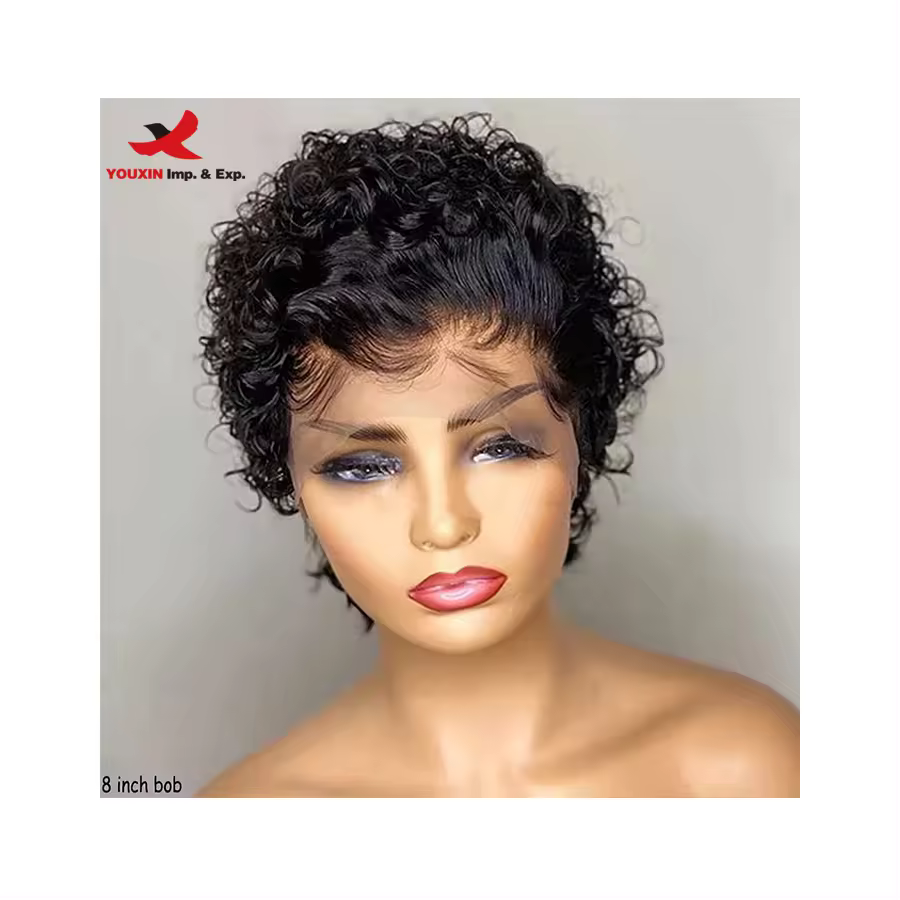 FENGFLY sans colle 100% perruques brésiliennes cheveux humains courte dentelle avant pixie bob perruque pour les femmes