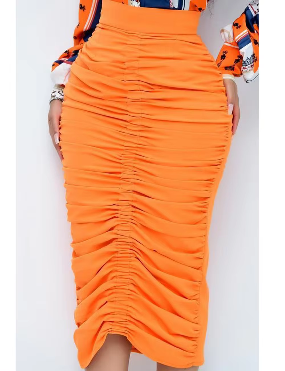 Jupe crayon décontractée verte cintrée taille haute plissée jupe Midi femme