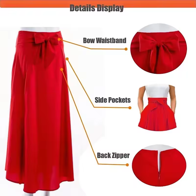 Nouvelle jupe taille haute pour femmes, poches, été, printemps élégant, robe plissée à nœud, décontracté, grandes jupes à ourlet
