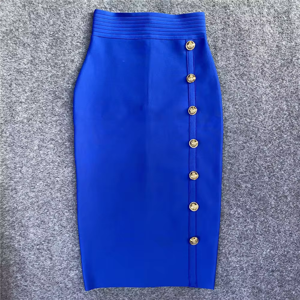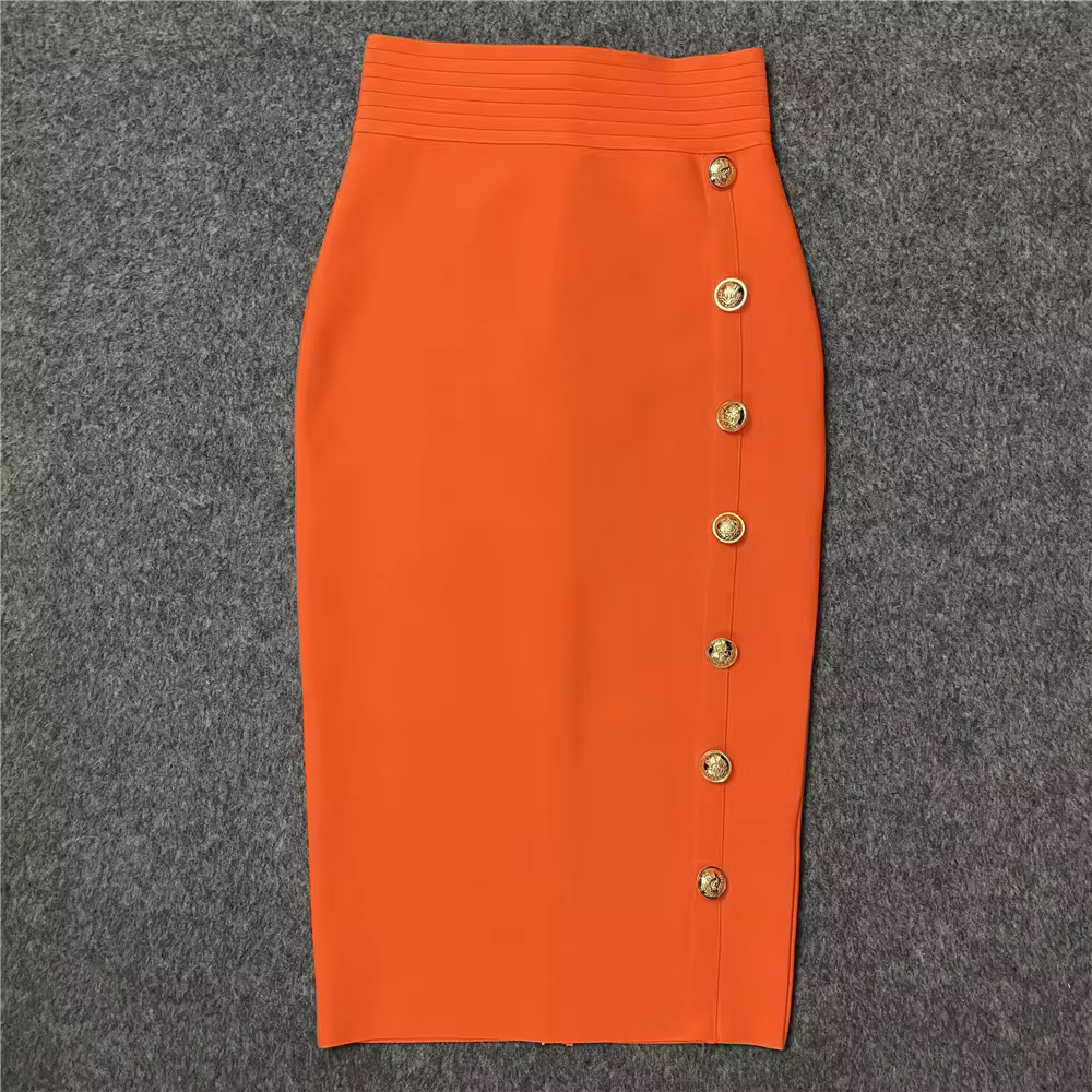Jupe crayon mi-longue élégante jupe bandage taille haute jupes bandage élastiques noires vêtements pour femmes à boutons