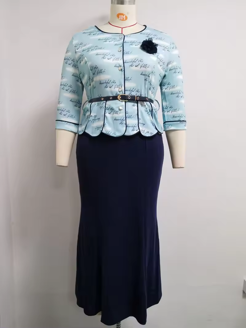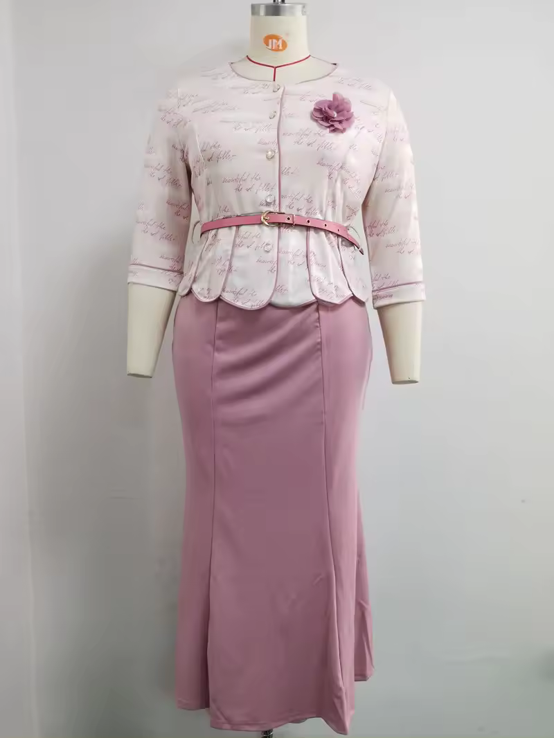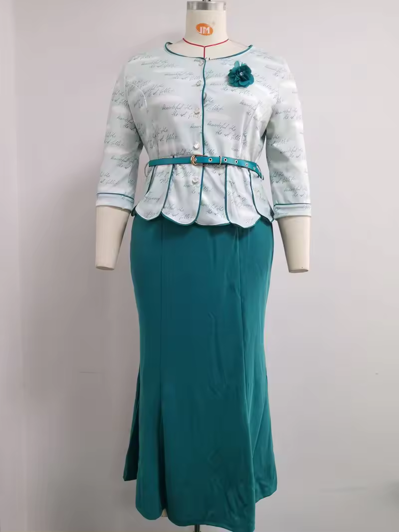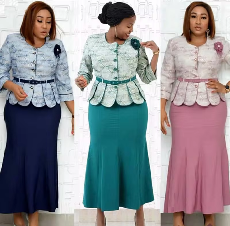 Y208106 nouveau Style africain grande taille 4xl-6xl femmes bureau femme manteau et jupe deux pièces costume avec ceinture Offre Spéciale