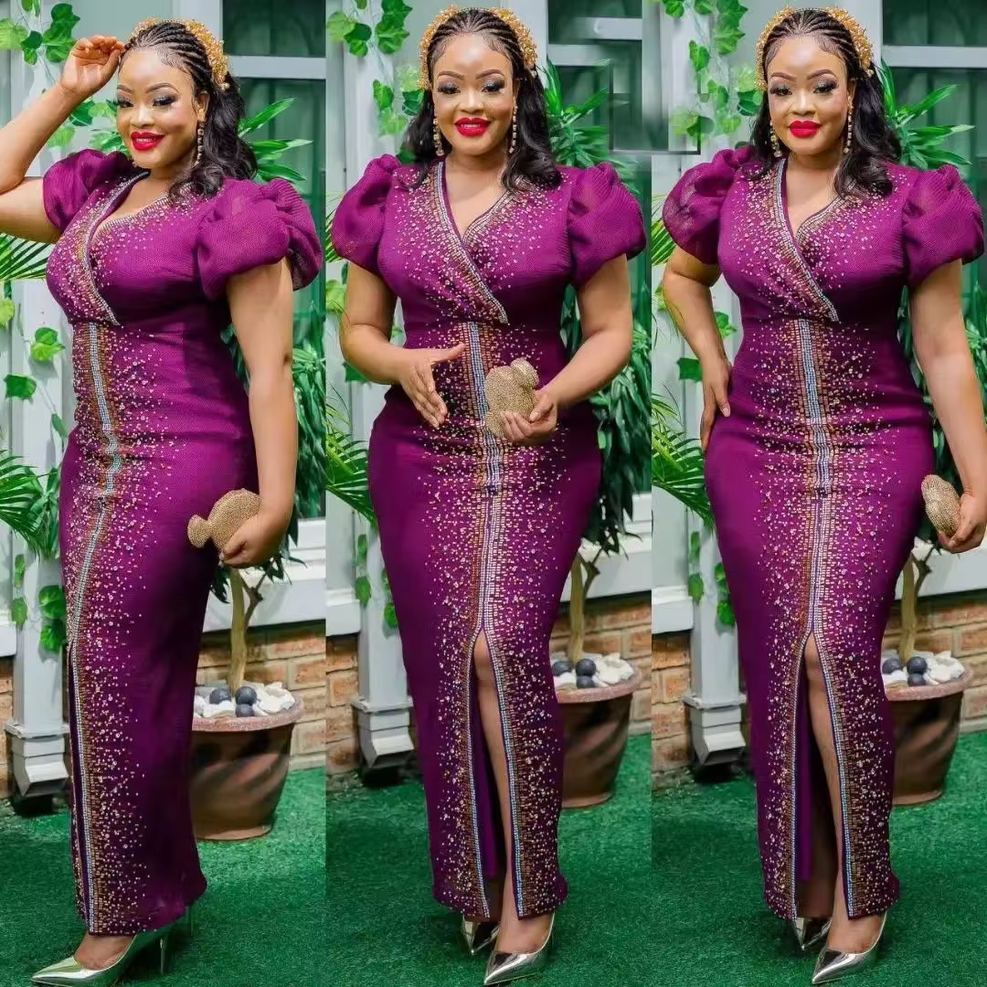 Mode africaine robe à paillettes pour femmes élégantes dames robes de soirée 2022 à manches courtes col en v diamant Maxi robe