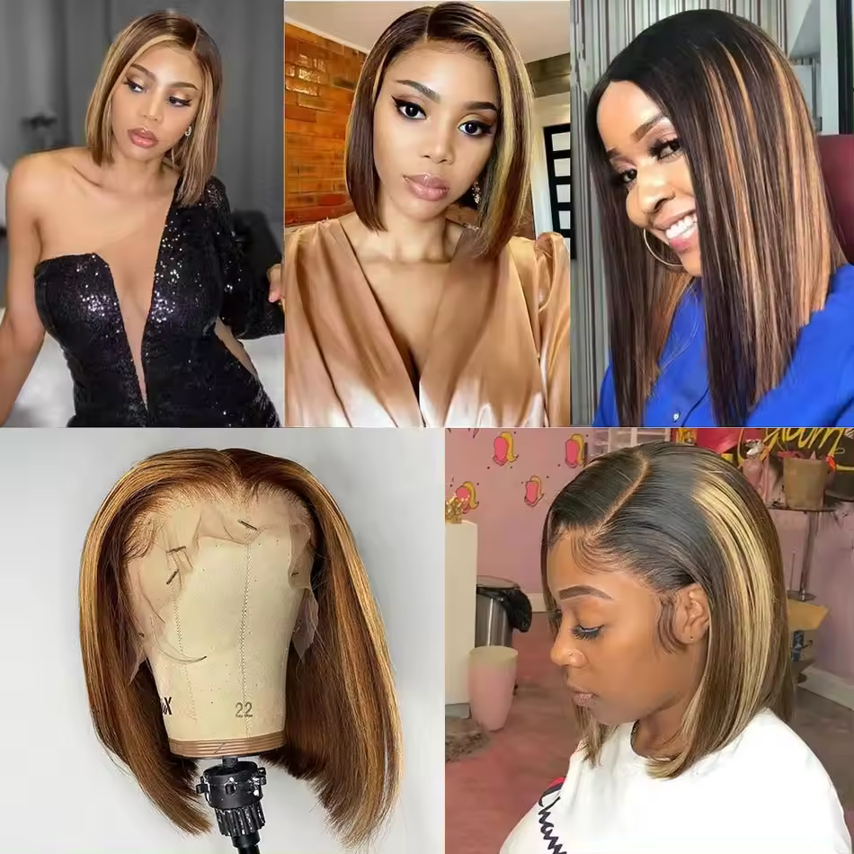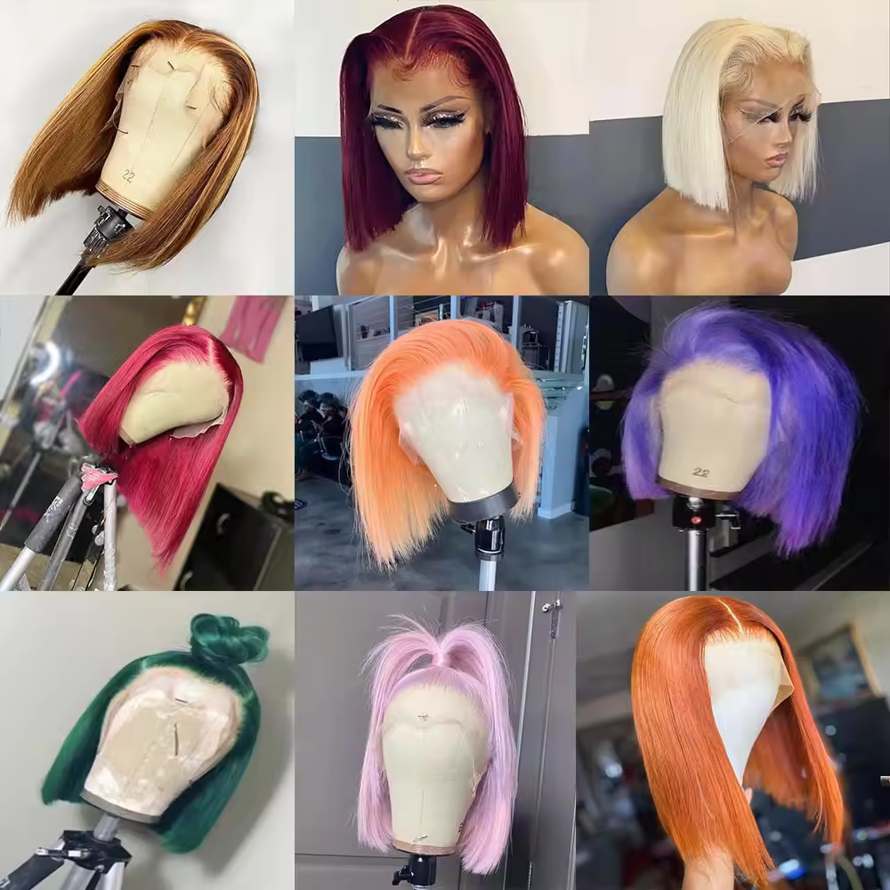 Colle moins perruques de cheveux humains pré plumés os droit Double dessiné HD dentelle 5x5 13x4 T partie avant de lacet court Bob perruques avec frange