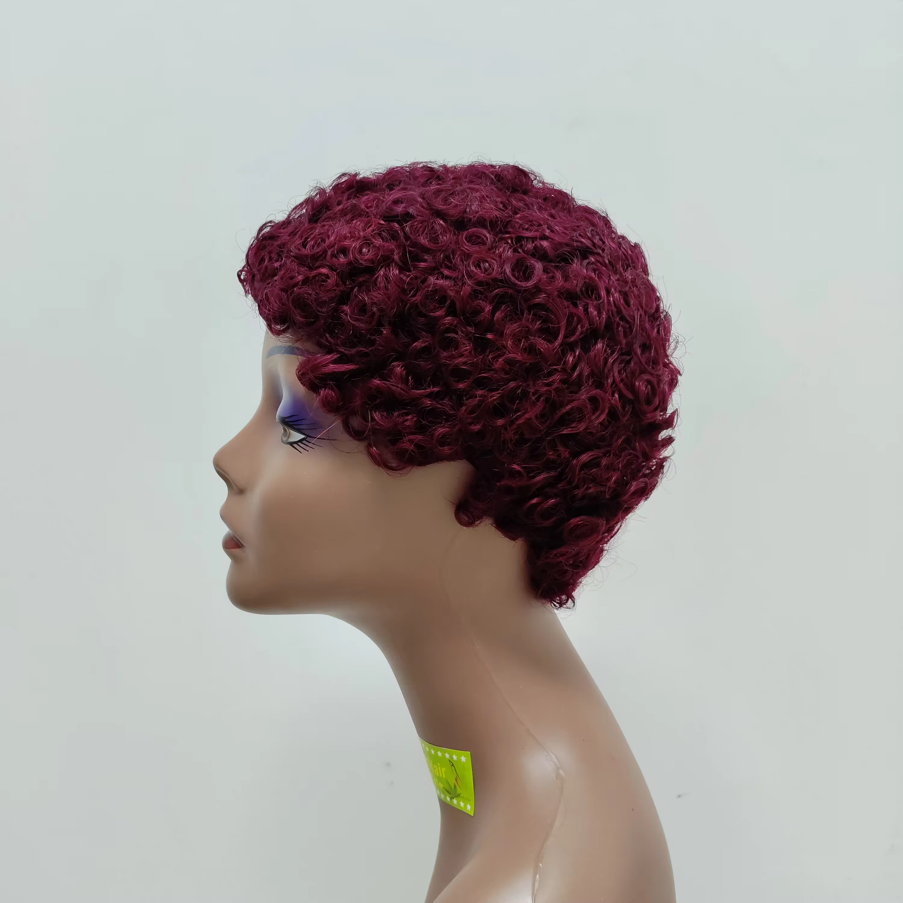 Letsfly-Perruque Afro Bouclée à la Machine, Cheveux Humains, Coupe Courte, Pas Cher, #27 #30 # 99j # 1b, Livraison Gratuite pour Femme Noire