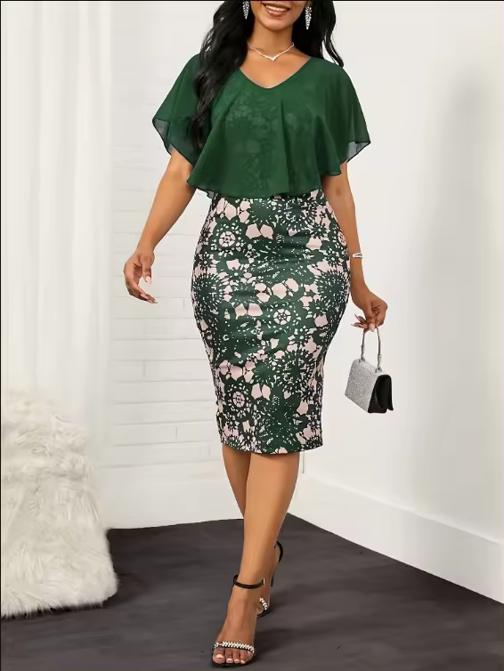 Fabricant de vêtements élégants pour femmes Ourlet à volants Crochet Dentelle Conception à volants imprimé coupe ajustée Col en V Robe décontractée